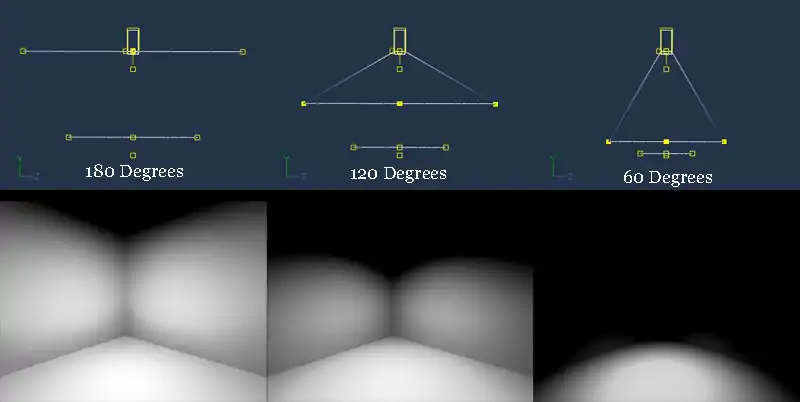 A Klieg Light emits light in the direction enclosed within the Cone Angle of the Light.