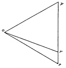 The first two terms of this expression may be made as small as we choose by sufficiently diminishing the quantities and , which is done by removing indefinitely the point along its ordinate. Hence, their sum is less than the third term, so that, consequently,