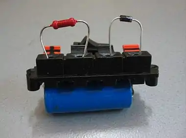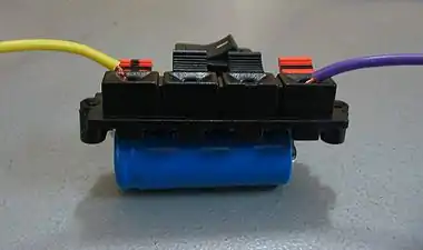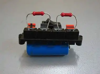 A small battery prepared for connecting in the feedback loop.