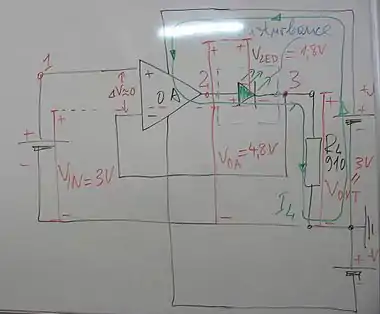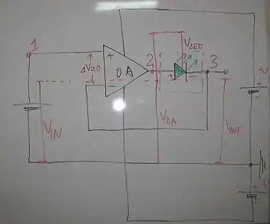 Investigating an LED connected in the feedback loop.