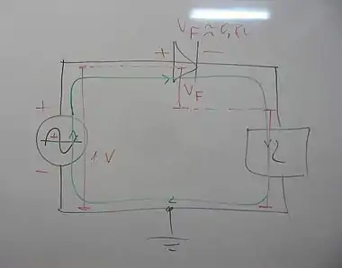 A "harmful" voltage VF across a diode.