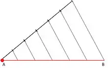 5) Using the line created in step 5, construct similar parallel lines to each division point, dividing up the given line into as many segments as desired.