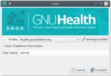 Login credentials for The Demo database: GNU Health/The Demo database#Connection to the GNU Health HMIS and LIMS