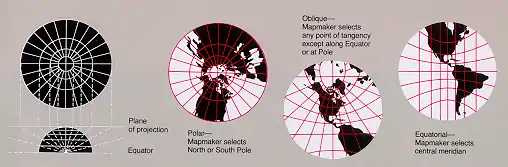 A map projection made by projecting onto a flat paper touching just one spot on the Earth.