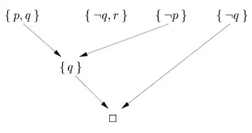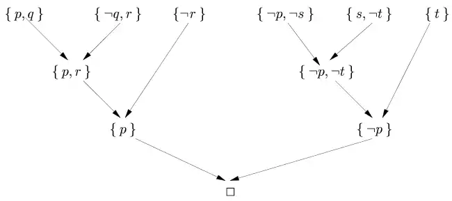 The order in which clauses are selected to compute the resolvent matters when computing the resolution refutation tree, as the following example shows: Consider the formula