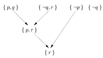 Soundness: Propositional resolution is sound, that is, if there exists a resolution refutation tree for a given formula , then must be unsatisfiable.