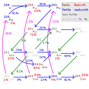 Ratios of capture reactions to fission reactions are also worse (more captures without fission) in most nuclear fuels such as plutonium-239, making epithermal-spectrum reactors using these fuels less desirable, as captures not only waste the one neutron captured but also usually result in a nuclide which is not fissile with thermal or epithermal neutrons, though still fissionable with fast neutrons. The exception is uranium-233 of the thorium cycle which has good capture-fission ratios at all neutron energies.