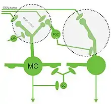 - Inhibitory interneurons responsible for multiple transformations of the odour signal. In Zebrafish, interneurons can be subdivided into periglomerular cells, granule cells and short axon cells, each of which has distinct morphological features.