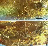 - ↑ Ricardo Pérez-de la Fuente; Xavier Delclòs; Enrique Peñalver; Mariela Speranza; Jacek Wierzchos; Carmen Ascaso; Michael S. Engel (2012). "Early evolution and ecology of camouflage in insects". Proceedings of the National Academy of Sciences of the United States of America. 109 (52): 21414–21419. Bibcode:2012PNAS..10921414P. doi:10.1073/pnas.1213775110. PMC 3535654. PMID 23236135.