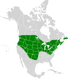 A. fasciatus is considered to inhabit northern regions of North America, whereas A. socius inhabits southern regions.[6] In areas where topography can vary, like in mountain regions, A. fasciatus is believed to be found at higher elevations, whereas A. socius is believed to be found in lower elevations.[8] This can be referred to as a mosaic hybrid zone.[8] A mosaic hybrid zone occurs because the habitat ranges for A. fasciatus and A. socius overlap.[9] While it is known that for the most part A. fasciatus remains separated from A. socius when breeding, the potential for interbreeding can occur.[6]