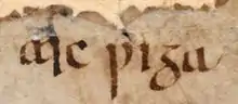 Several examples of the francisca, or throwing axe, have been found in England.[66] Such weapons can be distinguished from domestic hand axes by the curved shape of their heads.[67] Two main forms of throwing axes have been identified in England—one type had a convex edge, and the other type had an S-shaped edge. However, axes have been discovered that do not clearly fit into either category.[67] Writing in the sixth century CE, Roman author Procopius described the use of such throwing axes by the Franks, noting that they would be hurled at the enemy prior to engaging in hand-to-hand combat.[68] In his History of the Franks, the Frankish chronicler Gregory of Tours (also writing in the sixth century) described the throwing of an axe at the enemy.[68] It is from the Franks that the term francisca originated. However, various medieval authors used the term to refer to hand axes as well as throwing axes.[69] The archaeological record indicates that the throwing axe was no longer in use by the seventh century, and it does not appear in the Frankish Ripuarian Law. This decline in usage may indicate the rise of more sophisticated battle formations.[70] However, it again entered into use in the eighth and ninth centuries, upon its adoption by the Vikings.[71]
