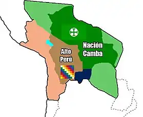 Currently, in camba nationalist groups in Santa Cruz de la Sierra (like Movimiento Nación Camba de Liberación), there has been an opposite vision to what they accuse of colla domination of Bolivia, and in favor of a secession from the Camba homeland or at least greater autonomy of eastern Bolivia within the State.[86] For this reason, they try to distance themselves from the concept of Upper Peru (interpreted as something purely Andean) and that they associate as belonging to the Collas, accused them of realize an "Upper-Peruvian neocolonialism" in Bolivia,[87] which has promoted indirectly an anti-Peruvianism within the most radical sectors, due to the similar ethnic composition between southern Peru and western Bolivia due to their common altiplano-historical past.