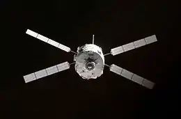 The Automated Transfer Vehicle, originally Ariane Transfer Vehicle or ATV, was an expendable cargo spacecraft developed by the European Space Agency (ESA),[7] used for space cargo transport in 2008–2015. The ATV design was launched to orbit five times, exclusively by the Ariane 5 heavy-lift launch vehicle. It effectively was a larger European counterpart to the Russian Progress cargo spacecraft for carrying upmass to a single destination—the International Space Station (ISS)—but with three times the capacity.