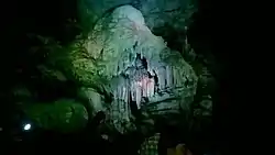 The Borra Caves (Borrā Guhalu) are located on the East Coast of India, in the Ananthagiri hills of the Araku Valley (with hill ranges' elevation varying from 800 to 1,300 m (2,600 to 4,300 ft)) of the Alluri Sitharama Raju district in Andhra Pradesh. The caves, one of the largest in the country, at an elevation of about 705 m (2,313 ft), distinctly exhibit a variety of speleothems ranging in size and irregularly shaped stalactites and stalagmites.[1][2] The caves are basically karstic limestone structures extending to a depth of 80 m (260 ft), and are considered the deepest caves in India.[3][4] The native name for the caves is Borrā Guhalu where Borra means abdomen in and Guhalu means caves in Telugu language.