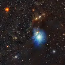The Chamaeleon I (Cha I) cloud is one of the nearest active star formation regions at ~160 pc.[3] It is relatively isolated from other star-forming clouds, so it is unlikely that older pre-main sequence (PMS) stars have drifted into the field.[3] The total stellar population is 200–300.[3] The Cha I cloud is further divided into the North cloud or region and South cloud or main cloud.