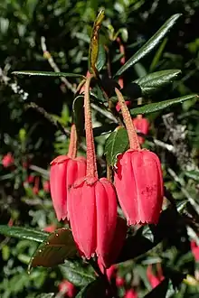 Crinodendron hookerianum, known as the Chilean lantern tree, is an evergreen tree in the family Elaeocarpaceae. It is endemic to Chile, where it occurs from Cautin to Palena (38 to 43°S). It grows near streams and in very humid and shady places, and is often found in Valdivian temperate forests.[2]