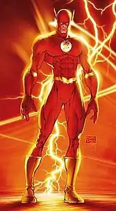 The Flash (or simply Flash) is the name of several superheroes appearing in American comic books published by DC Comics. Created by writer Gardner Fox and artist Harry Lampert, the original Flash first appeared in Flash Comics #1 (cover dated January 1940, released November 1939).[1] Nicknamed "the Scarlet Speedster", all incarnations of the Flash possess "superspeed", which includes the ability to run, move, and think extremely fast, use superhuman reflexes, and seemingly violate certain laws of physics.