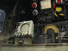 Testing of this modification immediately revealed another problem. With the display always showing north-up, it was no longer obvious whether the aircraft was flying towards its target, which previously was easy to see as the target would be at the top of the display. To address this, a further addition produced a bright line on the display indicating the direction of travel.[33] A later modification allowed the heading indicator line to be manually controlled by the operator. This was used in concert with the Mark XIV bomb sight to accurately correct for any wind blowing the aircraft off the bomb line. The indicator was set to an initial angle provided by the bomb aimer, and from then the navigator could see any residual drift on his display and call out corrections to the pilot, and to the bomb aimer who would update his settings in the bombsight.[34] This basic idea was later expanded to allow the navigator's measurements to be automatically sent back to the bombsight, meaning the bomb aimer no longer had to do this during the approach. Since the other settings, like altitude and airspeed, were already automatically fed in from the aircraft instruments, this left only the selection of the elevation of the target over sea level to be set manually, which could be done before the mission.[35]
