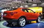The Hyundai HCD-5 (sometimes styled with Roman numerals as HCD-V and also known as the Crosstour) debuted at the Chicago Auto Show in February 2000.[6] The HCD-5 had a drivetrain similar to that of the contemporaneous Santa Fe, with a 2.7L Delta V6 engine, automatic transmission, and all-wheel-drive.[16] Hyundai billed it as a "multi-purpose sedan", combining aspects of a sport utility vehicle, sports car, station wagon, and minivan with seating for four, which "exudes both a retro and sporty feel". Visibility was aided by removing the B-pillar and making the A- and C-pillars as thin as possible.[17] The driver's position was intended to be used as a mobile office when parked.[18]