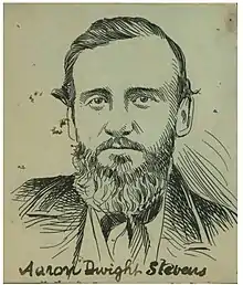 - † Aaron Dwight Stevens (Lee has Aaron C. Stevens), from Connecticut,[13]: 24 29, was the only one of Brown's men who had formal military training.[7]: 7 He was shot and captured October 18. Executed March 16, 1860.