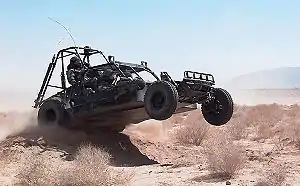 The Light Strike Vehicle (LSV) is an improved version of the Desert Patrol Vehicle (DPV), which it was designed to replace. Although the conventional US military replaced its DPVs with Humvees, special operation groups adopted the LSV for its small size and high mobility. It is part of the family of Internally Transportable Light Strike Vehicles (ITV-LSV).[1] As the name suggests, it is used for fast hit-and-run style raids, scouting missions, special forces support, and low intensity guerrilla warfare.