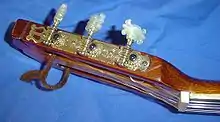 A machine head (also referred to as a tuning machine, tuner, or gear head) is a geared apparatus for tuning stringed musical instruments by adjusting string tension. Machine heads are used on mandolins, guitars, double basses and others, and are usually located on the instrument's headstock. Other names for guitar tuners include pegs, gears, machines, cranks, knobs, tensioners and tighteners.