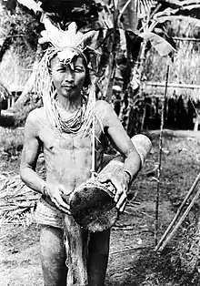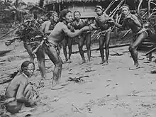Mentawai (also known as Mentawei and Mentawi) people are the native people of the Mentawai Islands (principally Siberut, Sipura, North Pagai and South Pagai) about 100 miles from West Sumatra province, Indonesia. They live a semi-nomadic hunter-gatherer lifestyle in the coastal and rainforest environments of the islands and are also one of the oldest tribes in Indonesia. The Mentawai population is estimated to be about 64,000. The Mentawai tribe is documented to have migrated from Nias – a northern island – to the Mentawai islands, living in an isolated life for centuries until they encountered the Dutch in 1621. The ancestors of the indigenous Mentawai people are believed to have first migrated to the region somewhere between 2000 and 500 BCE.[3] The Mentawai language belongs to the Austronesian language family.[4][5] They follow their own animist belief system called Arat Sabulungan, that links the supernatural powers of ancestral spirits to the ecology of the rainforest.[6][7] When the spirits are not treated well or forgotten, they might bring bad luck like illnesses and haunt those who forgot them.[6] Mentawai also have very strong belief towards objects they think are holy.[8] The people are characterized by their heavy spirituality, body art and their tendency to sharpen their teeth, a cultural practice tied to Mentawai beauty ideals. Mentawai tend to live in unison and peace with the nature around them because they believe that all things in nature have a form of spiritual essence.[6][9]