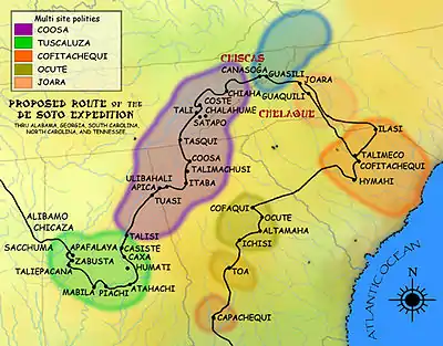 - ↑ Charles Hudson (1998). Knights of Spain, Warriors of the Sun: Hernando de Soto and the South's Ancient Chiefdoms. University of Georgia Press. pp. 234–238. ISBN 978-0-8203-2062-5. Retrieved March 3, 2012.