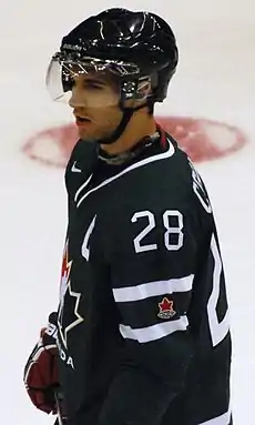 Cormier represented Canada in the IIHF World Junior Ice Hockey Championship in 2009 on their way to a gold medal and scored a goal and had two assists in six games.[20] At the 2010 event, he served as the captain of Canada, and added two goals and three assists in six games as Canada took home silver.[21]