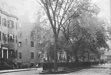 "The dwellings built in it were fine, indeed elegant for their time, and for many years it was the residence of some of the most substantial citizens. ... Architects, lawyers, and other professional men were among the first to establish their offices in it; then other business worked in, and a number of city and state offices, notably the headquarters of the board of police commissioners."[6] "In the middle of the square [was] an enclosed green, with a few trees, which ... was a pleasant bit of nature for the eye of the city man to rest upon."[6] During the city's Water Celebration in 1848, "the cavalcade [passed] up Park, down Beacon and Somerset Street, to Pemberton Square."[7]