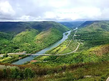 The region includes several state parks and other tourist destinations, including Hyner View State Park, Cherry Springs State Park, Kinzua Bridge State Park, Leonard Harrison State Park, Colton Point State Park, Susquehannock State Forest, Pennsylvania Grand Canyon, and Pine Creek Rail Trail.[4] Two rivers in the Pennsylvania Wilds - Allegheny and Clarion - are designated as parts of the National Wild and Scenic Rivers System. The West Branch Susquehanna River flows through the region.