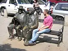 Slaveykov Square (Bulgarian: Площад Славейков) is one of the most popular squares in Sofia, the capital of Bulgaria. It is named after Bulgarian writers Petko and Pencho Slaveykov, father and son. A sculpture of the two sitting on a bench is one of its main landmarks.