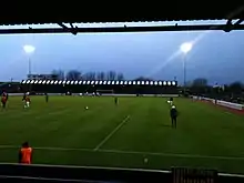The Railway End which now houses primarily away supporters but also home supporters from time to time, is a covered terrace opened in September 1933, following a £230 donation from the supporters club and £120 from the ladies supporters club.[2] In 2012, the club totally re-roofed the Railway End, despite not being instructed to at the time.[17]