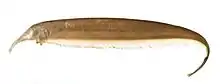 They have a relatively long, downwards-pointed and tube-like snout. The adult males of some species have distinct teeth on the outside of the lower jaw, likely used in confrontations with other males.[1] The largest species reach up to 60 cm (2 ft) in total length, but most are less than half that size and the smallest only reach about 15 cm (1⁄2 ft).[1][6] Several species are only known from museum specimens and consequently their living colors are unknown. Where known, the species are generally medium to dark brownish or grayish. They are often darker on the upper part than the lower and some have a pale line on the top of the head, but otherwise they are quite uniformly colored without conspicuous patters. However, at least one species, S. cramptoni, is overall whitish-pink, similar to some other knifefish like Compsaraia and Orthosternarchus that inhabit deep, dark rivers.[2]