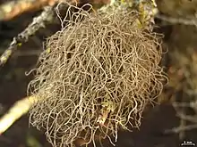 Sulcaria isidiifera, commonly known as the splitting yarn lichen, is a rare species of pendent (hanging) fruticose lichen in the family Parmeliaceae.[1] It has a dull yellowish-white to light brown and reddish-brown thallus and is typically 3–5 cm (1.2–2.0 in) long. It is only known to occur in the Los Osos Oaks State Natural Reserve, in the Central Coast of California region, where it grows on a variety of shrubs.