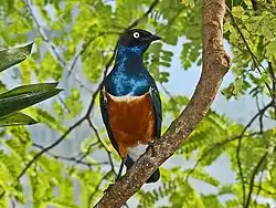 The superb starling (Lamprotornis superbus) is a member of the starling family of birds. It was formerly known as Spreo superbus.[2] They are long-lived birds that can live over 15 years in captivity.[3]