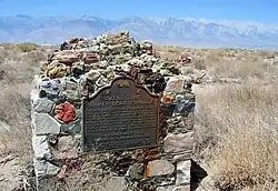 Swansea was a boomtown located on the eastern shore of Owens Lake. Spawned by the success of the silver mining operations in the nearby Cerro Gordo Mines in the late 1860s, Swansea became a hub for smelting the ore and transporting the resulting ingots to Los Angeles, over 200 miles away. The smelter operated from 1869 to 1874.[2]