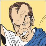- The quizmaster in the Circus Maximus who coerces the reluctant winner to accept his prize is a caricature of the French television entertainer Guy Lux.[1]