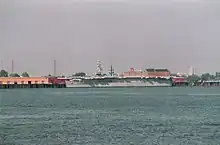 Her island and stern plate, along with the island of USS Iwo Jima, were obtained for preservation by the Texas Air Museum, at Rio Hondo, Texas.[6] However, that museum subsequently closed, and Cabot's island was demolished.[7] Cabot's stern plate is on display at the Texas Air Museum, at Slaton, Texas.[8] The National Museum of Naval Aviation at NAS Pensacola constructed a replica of Cabot's island using original plans, along with a reconstructed section of flight deck.[9]