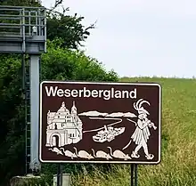 The Weser Uplands[1] (German: Weserbergland, German pronunciation: [ˈveːzɐˌbɛʁklant]) is a hill region in Germany, between Hannoversch Münden and Porta Westfalica, along the river Weser. The area reaches into three states, Lower Saxony, Hesse, and North Rhine-Westphalia. Important towns of this region include Bad Karlshafen, Holzminden, Höxter, Bodenwerder, Hameln, Rinteln, and Vlotho.
